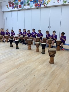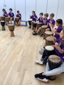 Pupils followed the beat and explored different sounds they could make by tapping, scratching and hitting the middle/edge of the drum. They also learnt to play the base in the middle of the African drum and the tone at the edge of the drum. They played in beats of four and learnt to add a break.