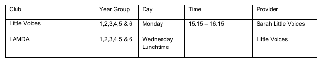 Other clubs/activities are provided and run by outside agencies and may incur a small fee.