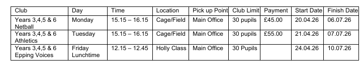 Pupils can either change into their PE Kit or they can bring a change of clothing that is suitable for the activity they are attending. Pupils will get changed before they attend the club.
